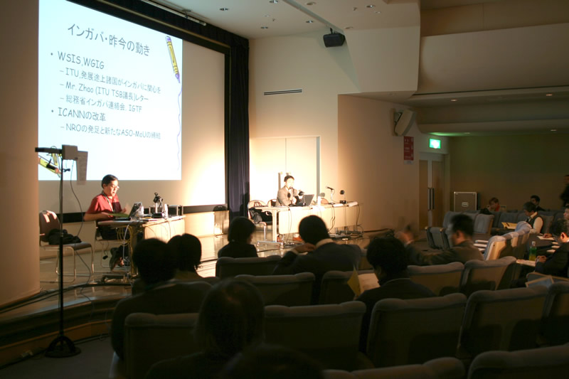 WHOISに関するセッション | インターネットガバナンスの現状について発表する JPNIC IPアドレス担当理事 前村 昌紀氏 |
