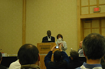 Plenaryでは、2007年10月29日に亡くなられた、いとぢゅん(itojun)こと萩野純一郎氏※1を偲び、彼の貢献を称える時間が設けられました。2003年から2004年にIABメンバーを務められたほか、IPv6の実装で知られるKAMEプロジェクト※2のコア・メンバーとして活躍されたことなどが紹介されました。