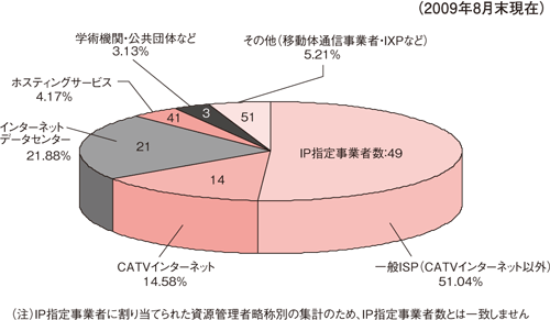 インターネット接続サービスでは、2003年~2007年前半頃までは、ADSLを利用したインターネット接続サービスの利用者に対して割り当てる、プールアドレスが主流を占めていました。しかし、2007年後半頃より、光ファイバーを利用したインターネット接続サービス用のプールアドレスを申請するIP指定事業者が、大半を占めるようになりました。