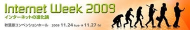 Internet Week 2009では「インターネットの進化論」をイベントテーマに掲げ、インターネットの進化過程における、我々の現在の立ち位置を確認し、今後取り組むべき課題解決に向けての足掛かりを提示すべく、最新テクノロジーを扱うセッションから、今後も継続して検討が必要なインターネットの運用・技術に関わるセッションを実施しました。