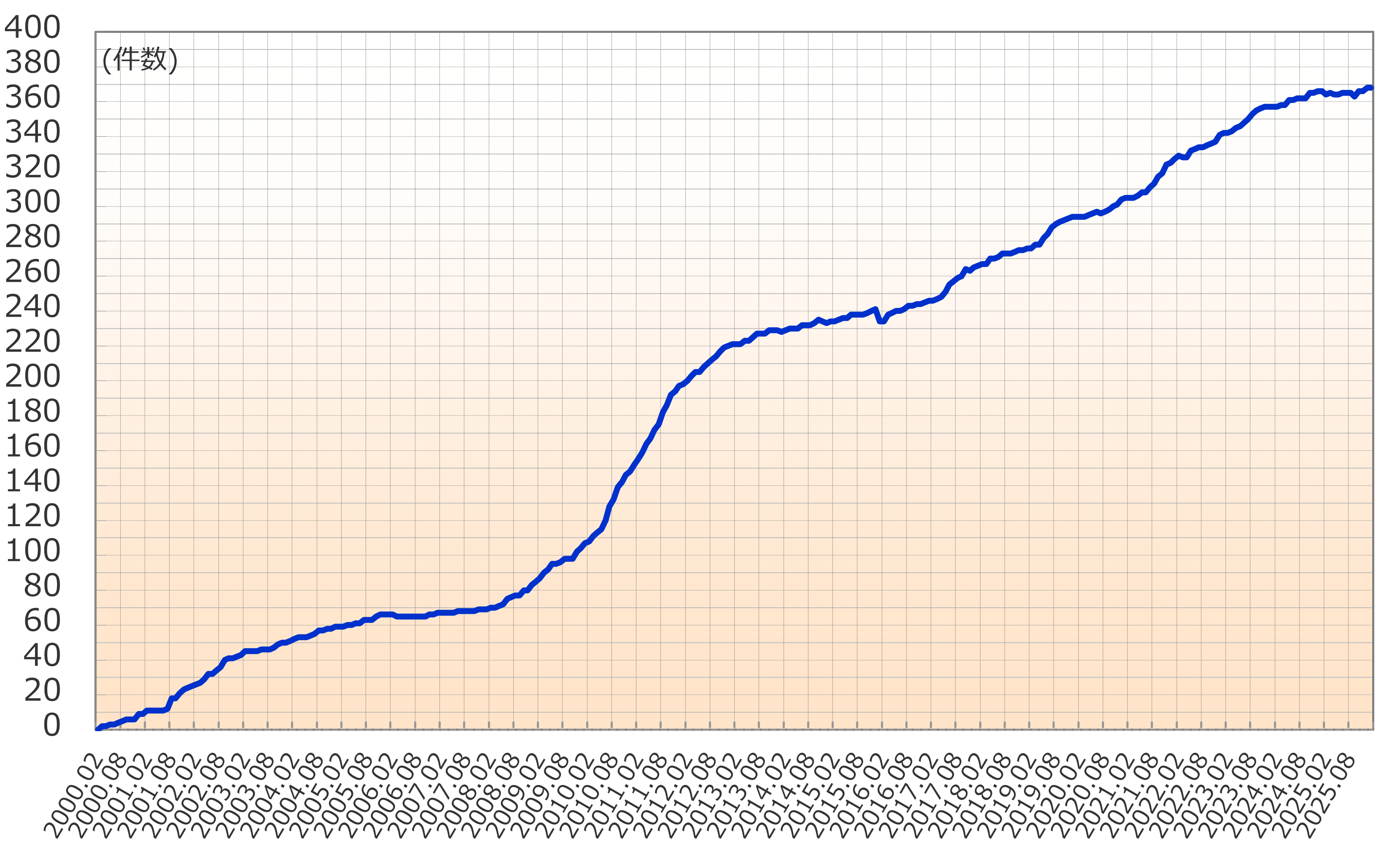 IPアドレス管理指定事業者数の推移(最終更新日)
