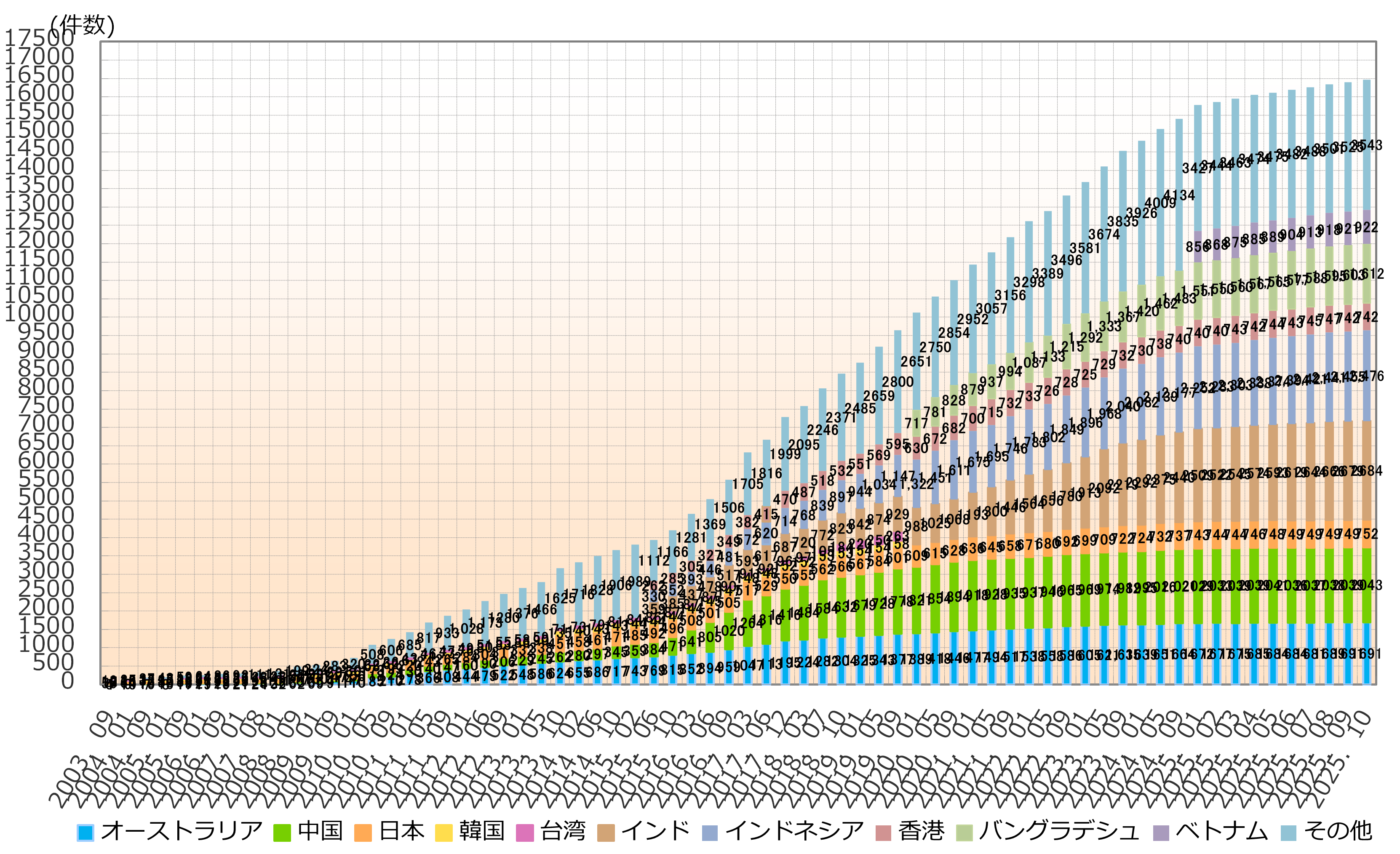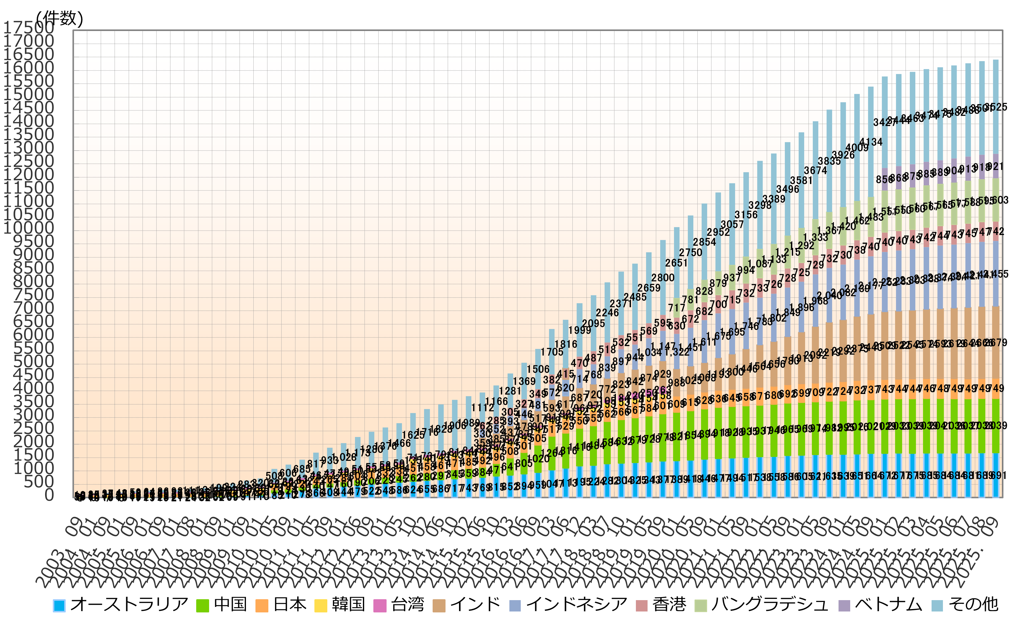 アジア太平洋地域の国別IPv4アドレス、IPv6アドレス、AS番号配分状況