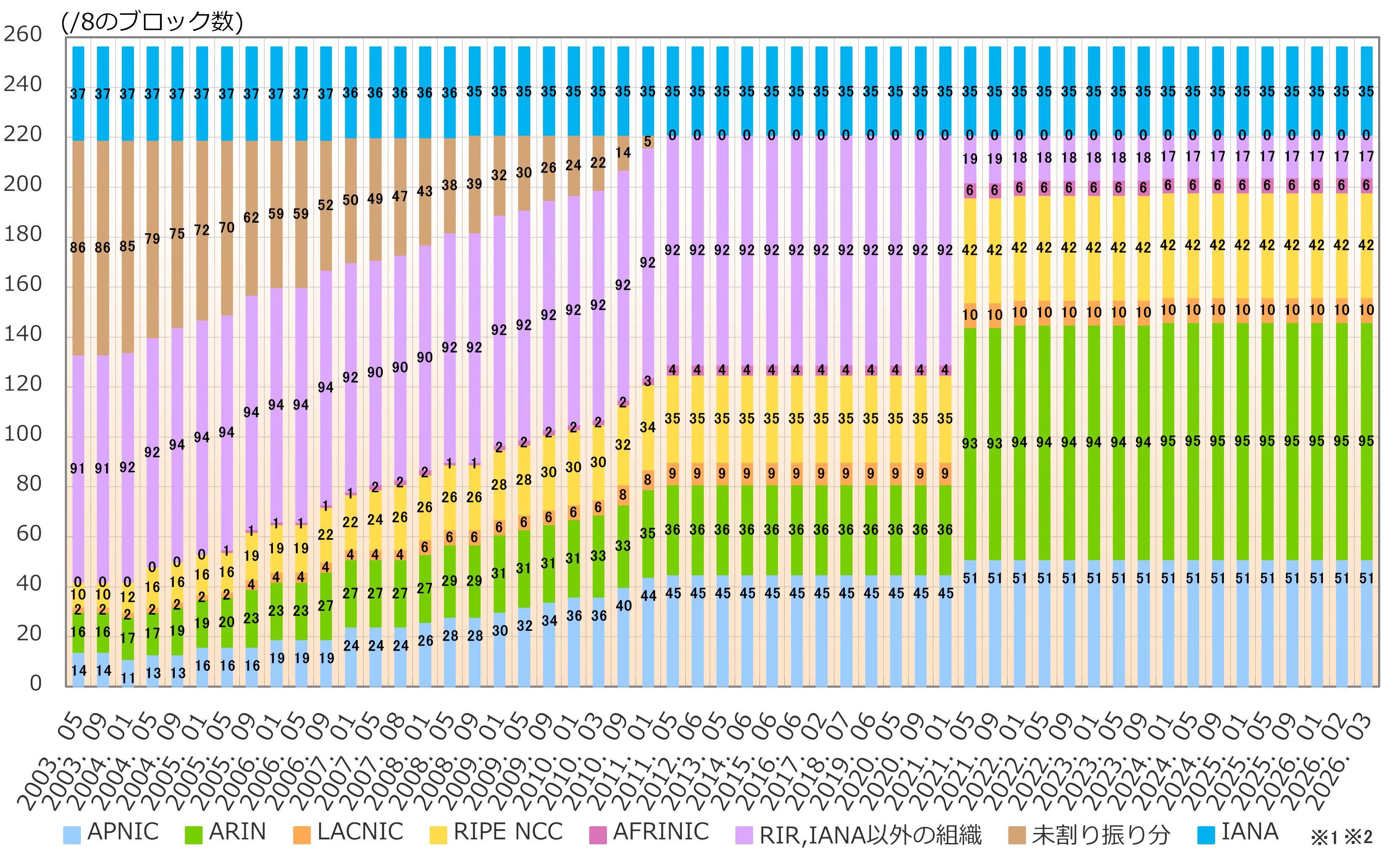 - ※2 未割り振り分はIANAが管理していましたが、2011年2月3日にすべての分配が終了しました。