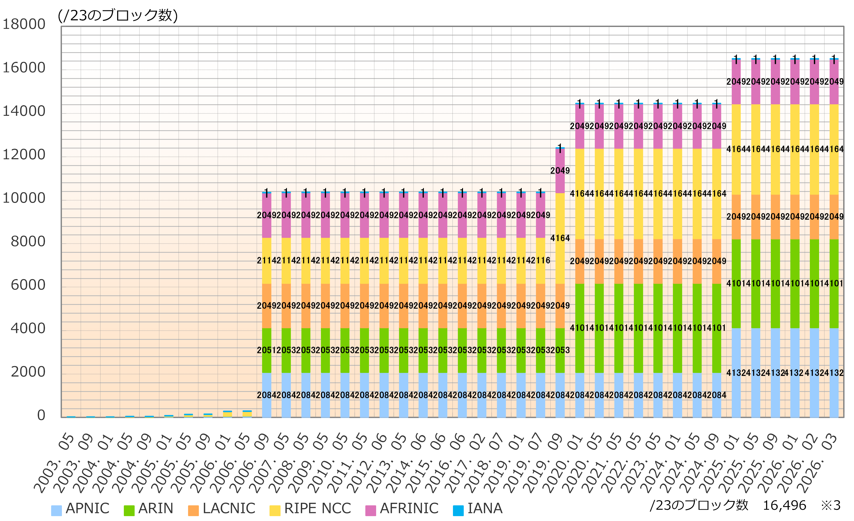- ※3 IANAからRIRに割り振られた/23のブロック数14,448